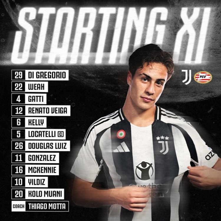 2月12日訊 尤文在本輪歐冠附加賽對陣埃因霍溫,首發(fā)名單已經(jīng)公布