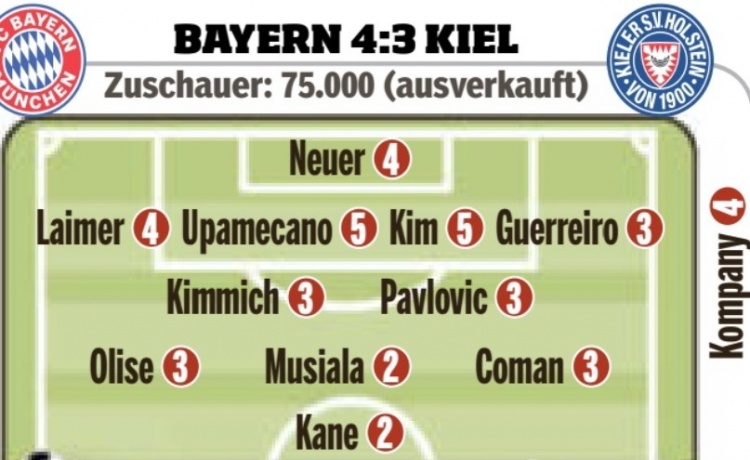 圖片報(bào)拜仁賽后評(píng)分:1分最佳,5分最差