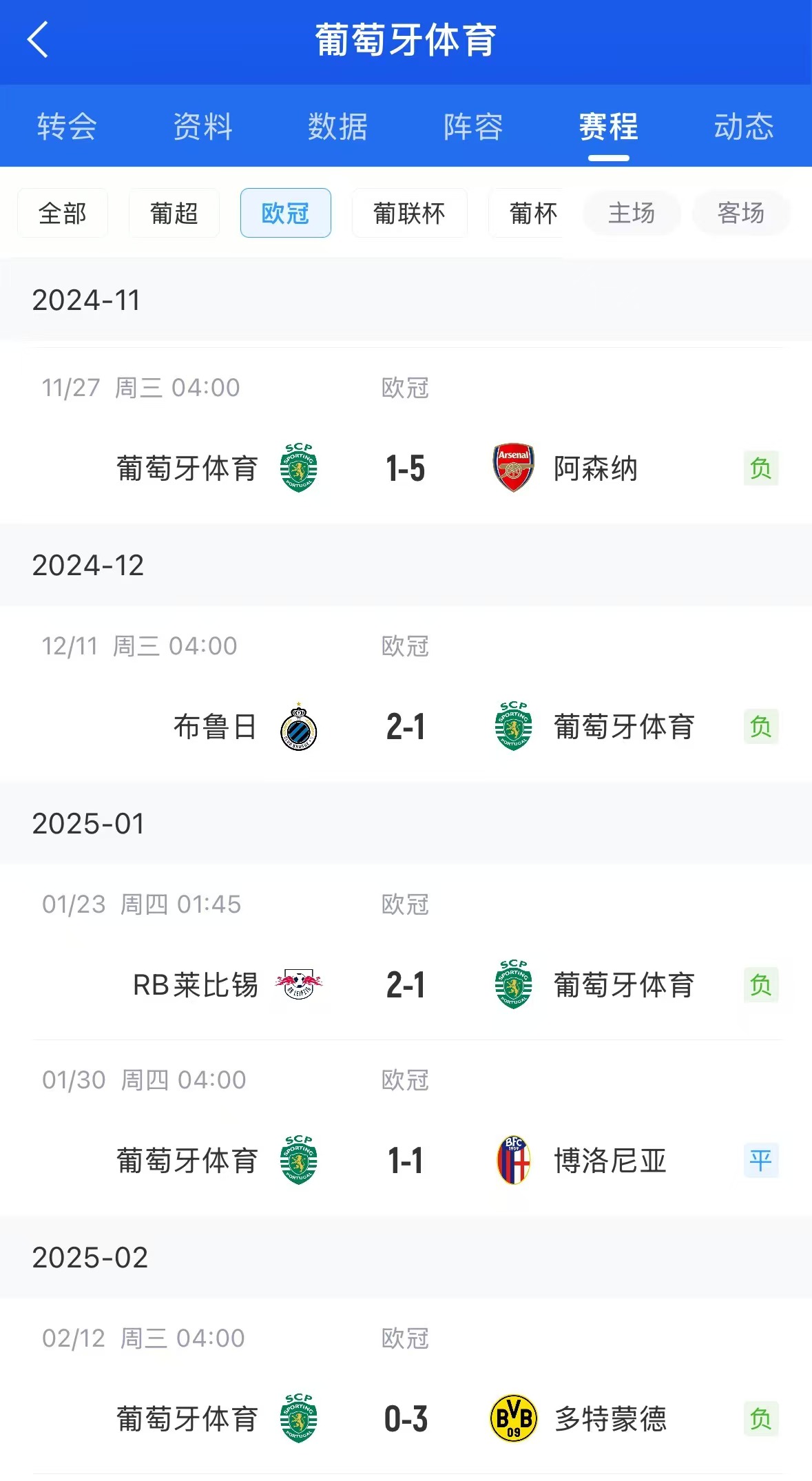 02月12日訊 歐冠淘汰賽附加賽首回合,葡萄牙體育主場0-3不敵多特。球隊(duì)在阿莫林離任后,5場歐冠比賽1平4負(fù)未嘗一勝。