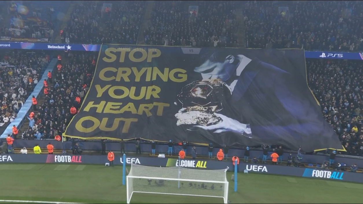 2月12日訊 今天凌晨,曼城在歐冠主場2-3不敵皇馬,球迷打出了羅德里親吻金球獎的橫幅,并在橫幅上配文綠洲樂隊名曲“Stop Crying Your Heart Out”(收起你的眼淚)。現(xiàn)在,曼城球迷團體We Are 1894表示,這一橫幅并非針對維尼修斯,而是皇馬主席弗洛倫蒂諾。