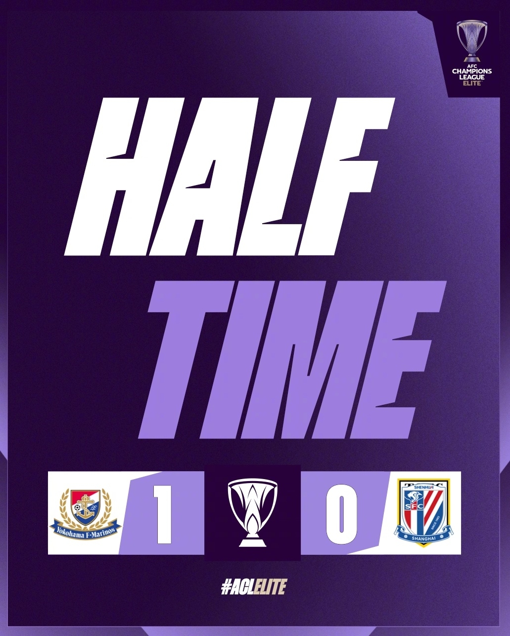 傷停補(bǔ)時(shí)2分鐘。上半場(chǎng)比賽結(jié)束,上海申花0-1橫濱水手。