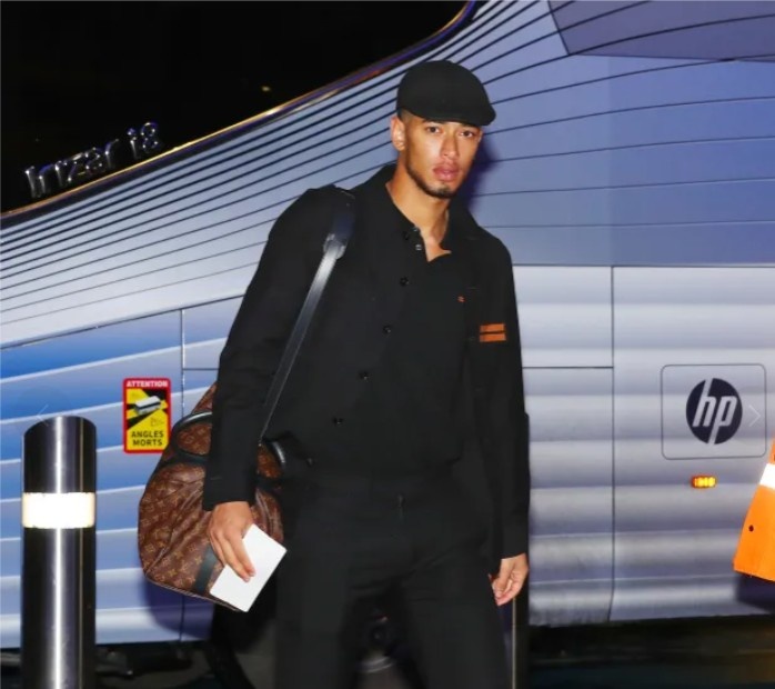 當(dāng)?shù)貢r間周二晚間,貝林厄姆隨皇馬全隊一起飛回馬德里,陪同英格蘭國腳一起登機(jī)的有他的母親和女友。貝林厄姆頭戴一頂黑色平頂帽,搭配黑色夾克和襯衫,以及一只售價超過2000英鎊的LV單肩包。