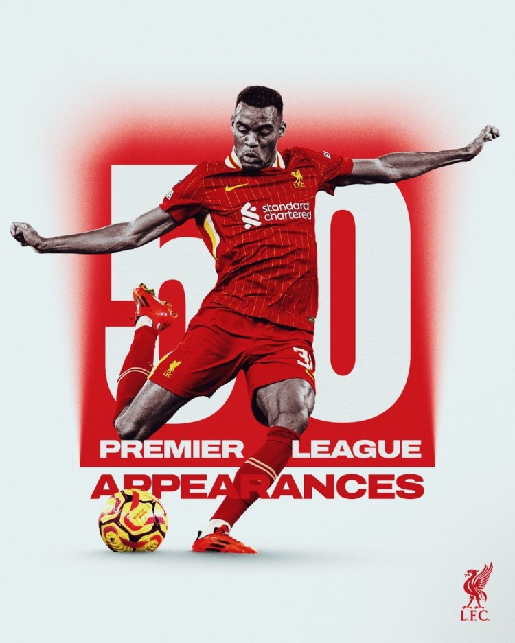 這是赫拉芬貝赫出戰(zhàn)的第50場英超,利物浦官方也曬出紀念海報。