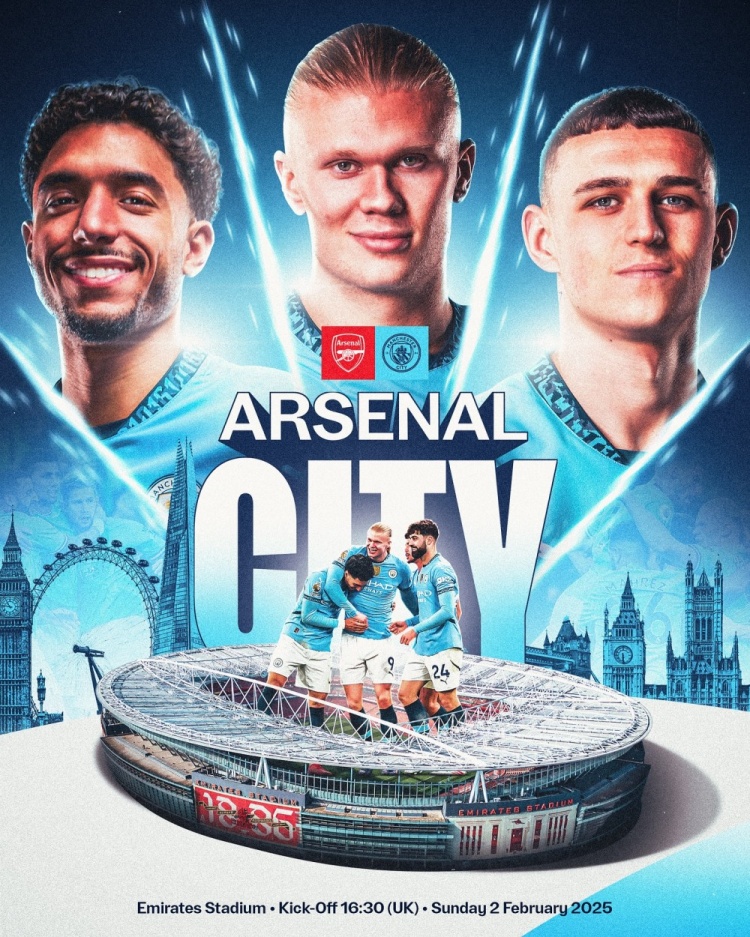 2月2日訊 北京時間明天凌晨00:30的英超焦點大戰(zhàn),曼城將前往酋長球場對陣阿森納。賽前,曼城曬出海報,預(yù)熱這場比賽。