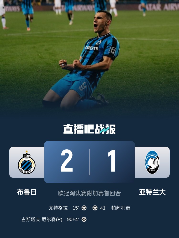 歐冠淘汰賽附加賽首回合,布魯日2-1絕殺亞特蘭大,絕殺點(diǎn)球引爭(zhēng)議。