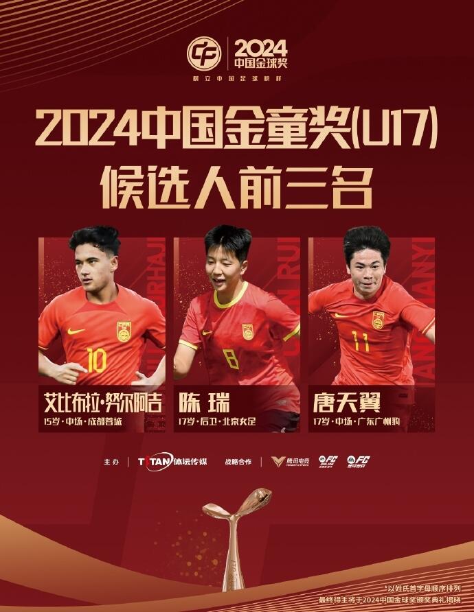 02月13日訊 2024中國金球獎(jiǎng)?lì)C獎(jiǎng)儀式將于2月13日在杭州舉行,現(xiàn)場播放的金童獎(jiǎng)(U17)三人候選宣傳片顯示,近期陷入出軌、賭球風(fēng)波的唐天翼被移除,魏祥鑫“遞補(bǔ)”。