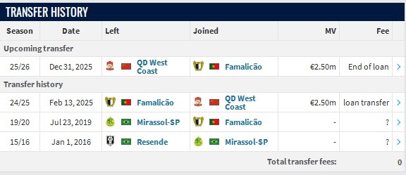 2月14日訊 德國《轉會市場》更新了巴西后衛(wèi)里切利的信息,網站顯示里切利在2月13日正式由葡超法馬利康租借加盟青島西海岸。