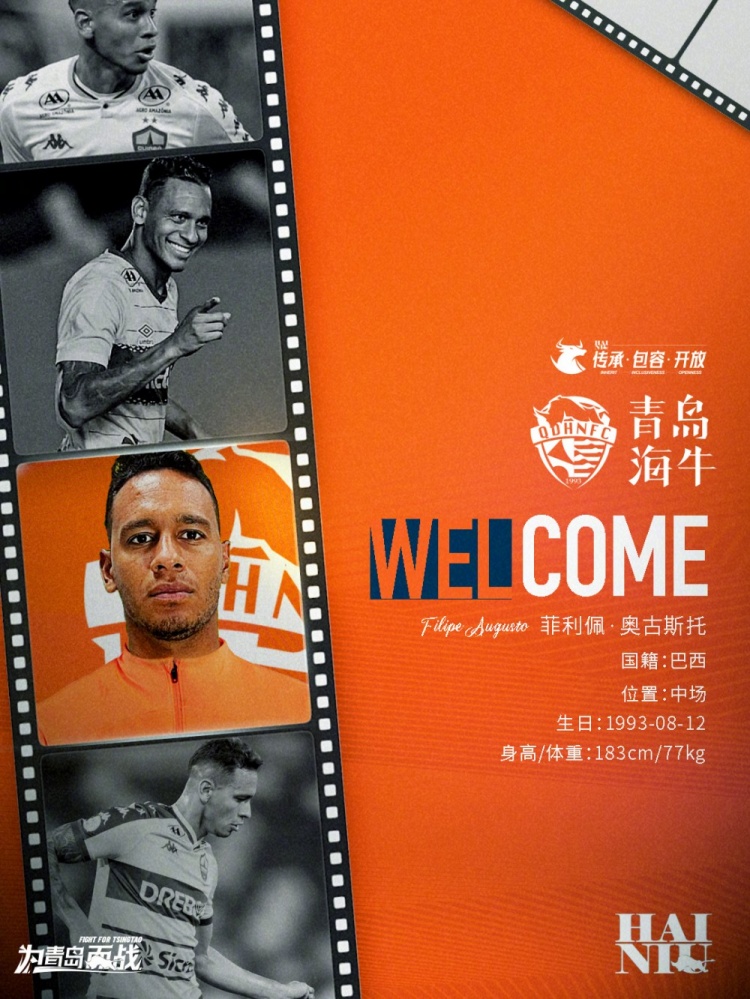 經(jīng)友好協(xié)商并達成一致,自即日起菲利佩·奧古斯托(Filipe Augusto)自由身加盟青島海牛足球俱樂部。菲利佩·奧古斯托與俱樂部簽署1+1合同,歡迎他的到來。