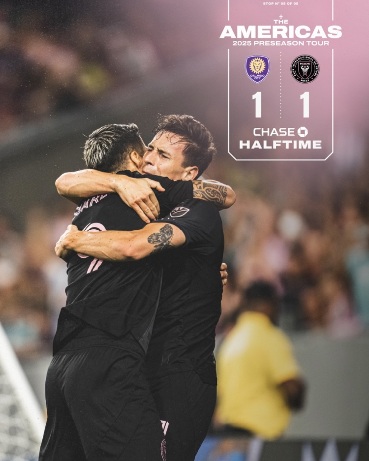 傷停補時1分鐘。上半場比賽結(jié)束,邁阿密國際1-1奧蘭多城。