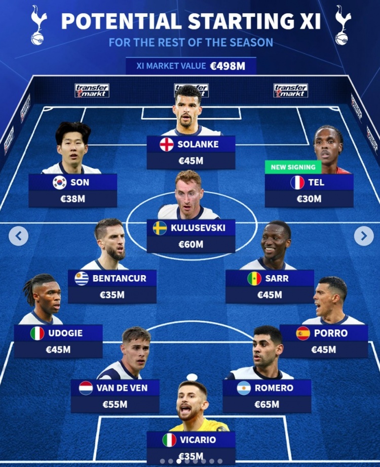 前鋒:孫興慜(3800萬)、索蘭克(4500萬)、特爾(3000萬)