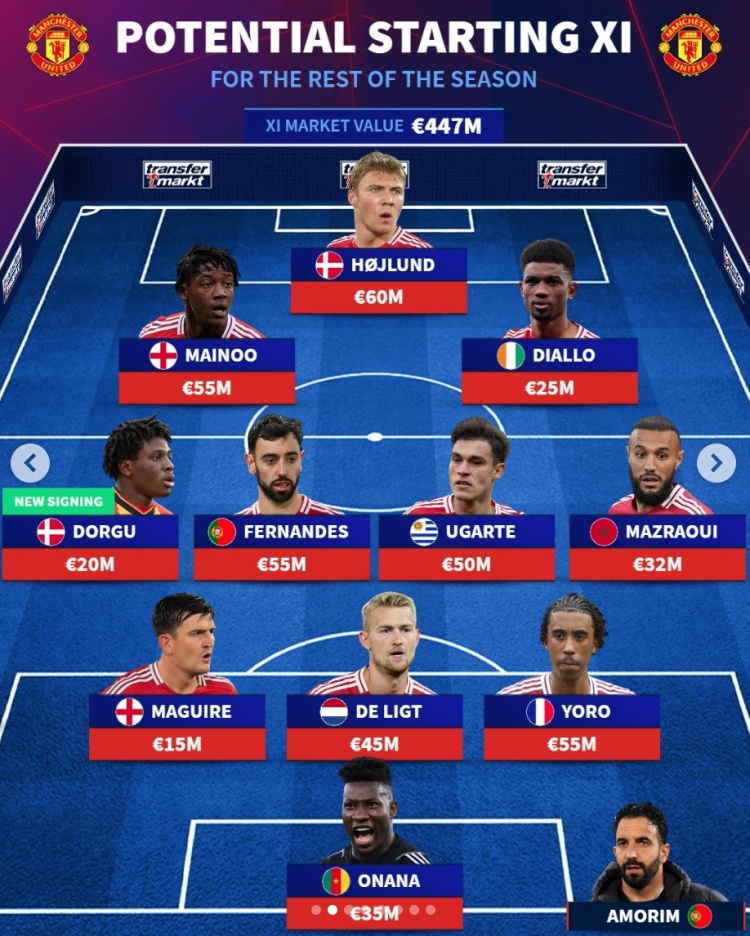 德轉(zhuǎn)預(yù)測曼聯(lián)下半程首發(fā)陣:總身價4.47億歐元