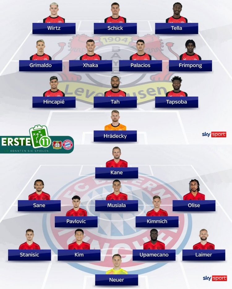 諾伊爾/斯坦尼西奇、金玟哉、于帕梅卡諾、萊默爾/帕夫洛維奇、基米希/薩內(nèi)、穆西亞拉、奧利塞/凱恩