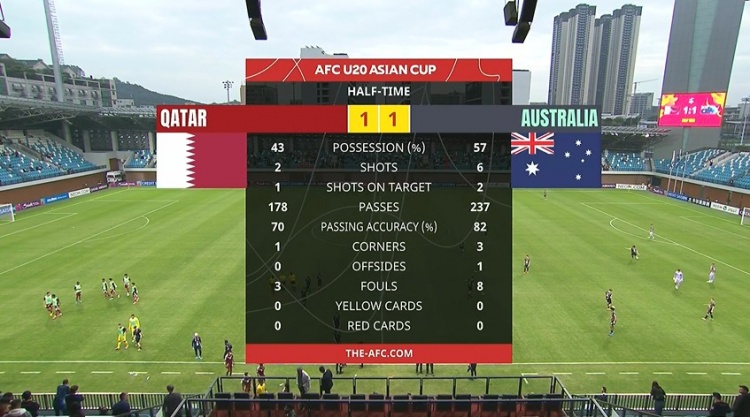 第19分鐘,卡塔爾反擊機(jī)會,賈姆希德右路推進(jìn)下底,隨后低平球橫傳,后點(diǎn)哈立德-古達(dá)搶點(diǎn)攻門得手,卡塔爾U201-0澳大利亞U20。↓