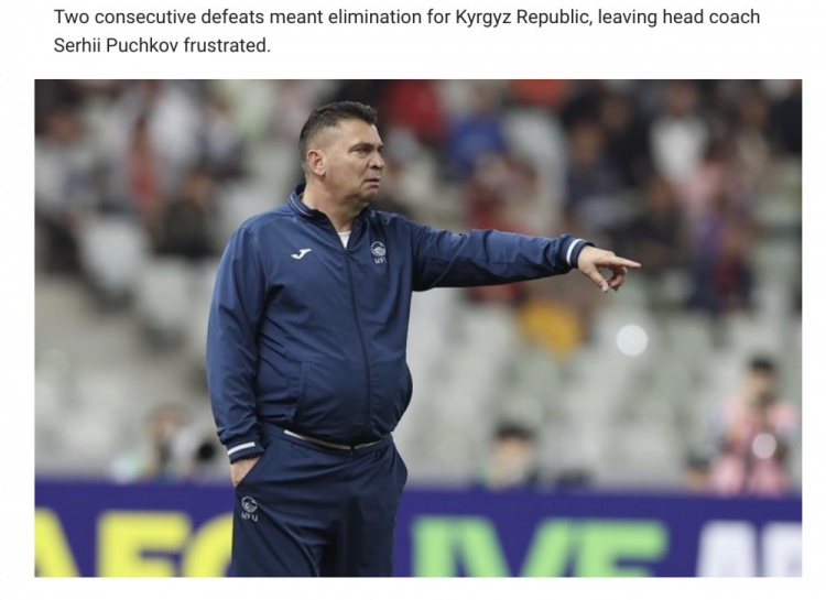 兩連敗意味著吉爾吉斯斯坦提前出局,主帥普奇科夫?qū)Υ烁械椒浅>趩剩硎荆骸耙了固乩步鸬募t牌打亂了我們的比賽計(jì)劃,之后我們又丟了一球,雖然我們打入第二球迫近了比分,但這遠(yuǎn)遠(yuǎn)不夠?!?/p>