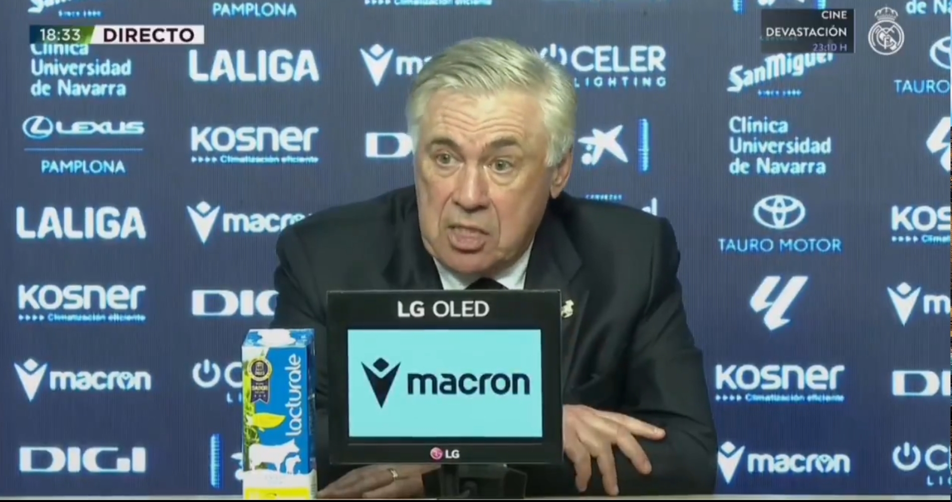 安切洛蒂賽后表示:“我認為裁判沒有聽懂貝林厄姆的英語。他說的是‘滾開’(f**k off),而不是‘**你’(f**k you),這完全不一樣。”