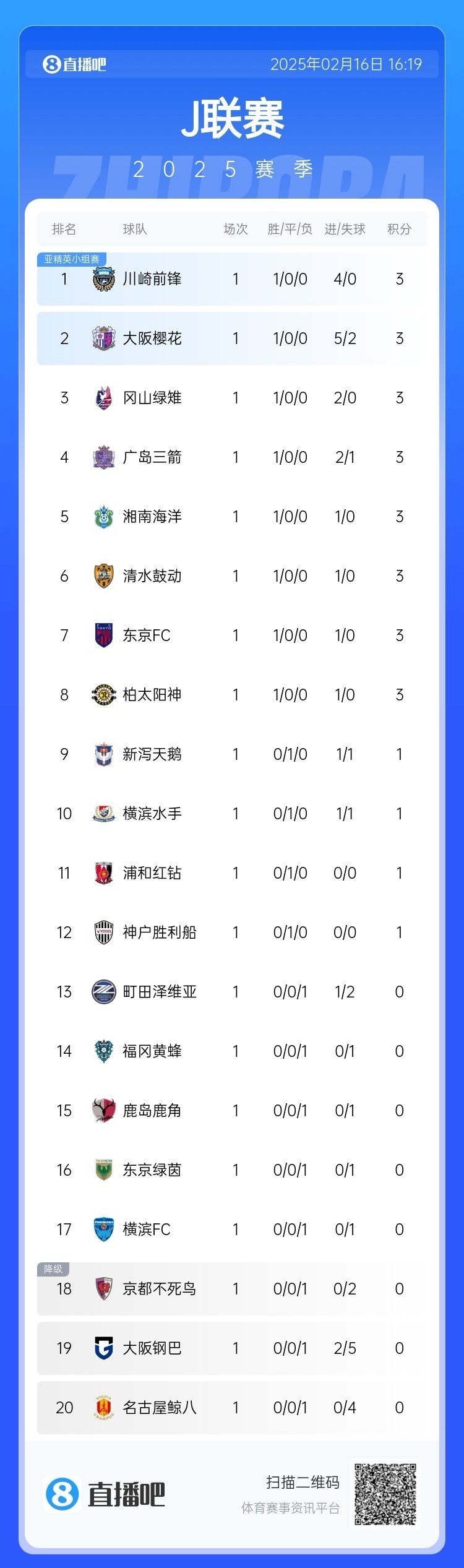 2月16日訊 新賽季J1聯(lián)賽于本周末拉開帷幕,本賽季是J1聯(lián)賽改為跨年賽制前最后一個賽季。首輪揭幕戰(zhàn)便上演“大阪德比”,最終香川真司效力的大阪櫻花5-2大勝上賽季殿軍大阪鋼巴,香川真司也收獲賽季首球。其他比賽,衛(wèi)冕冠軍神戶勝利船主場0-0悶平浦和紅鉆,川崎前鋒4-0大勝名古屋鯨八,橫濱水手1-1戰(zhàn)平新瀉天鵝,町田澤維亞主場1-2不敵廣島三箭。