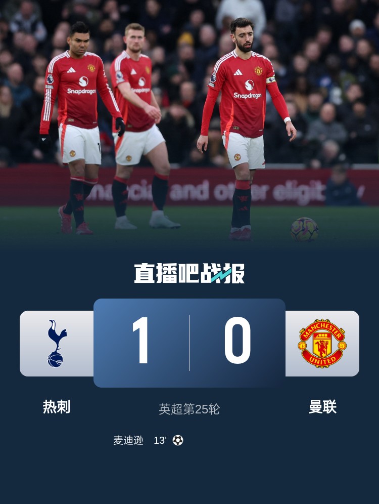 02月17日訊 英超第25輪,曼聯(lián)0-1不敵熱刺,賽季遭對手三殺。